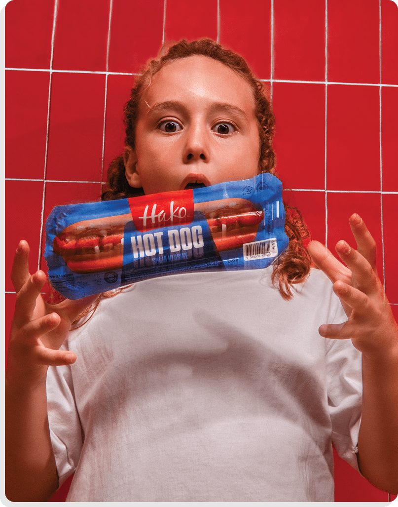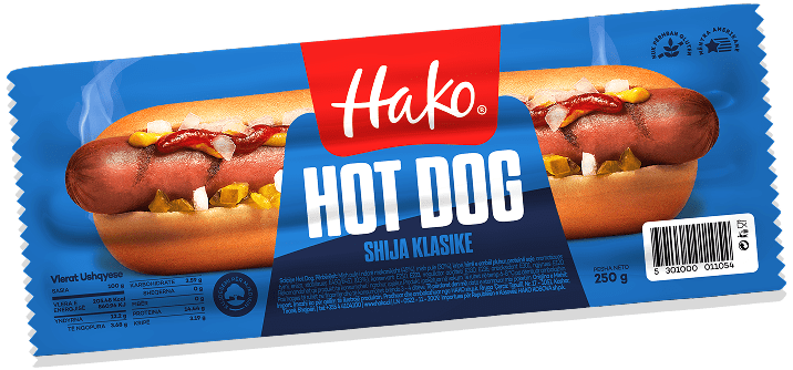 Mechanically separated chicken meat, chicken meat, salt, milk protein, corn starch, smoke flavoring, spices, stabilizers E450/E451 (0.3%), antioxidant E301 (0.05%), colorant E120 (0.04%), preservative E250.