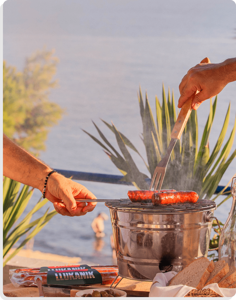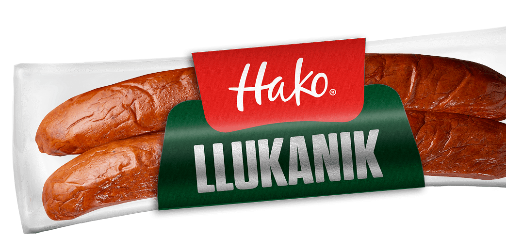 Mish derri i përzgjedhur (55%), mish viçi (20%), ujë, kripë, erëza, aromatizues tymi, stabilizues E450/E451, konservantë E250, E223, rregullator aciditeti E330, E236, përforcues shije E621, antioksidant E301, ngjyrues E120.
